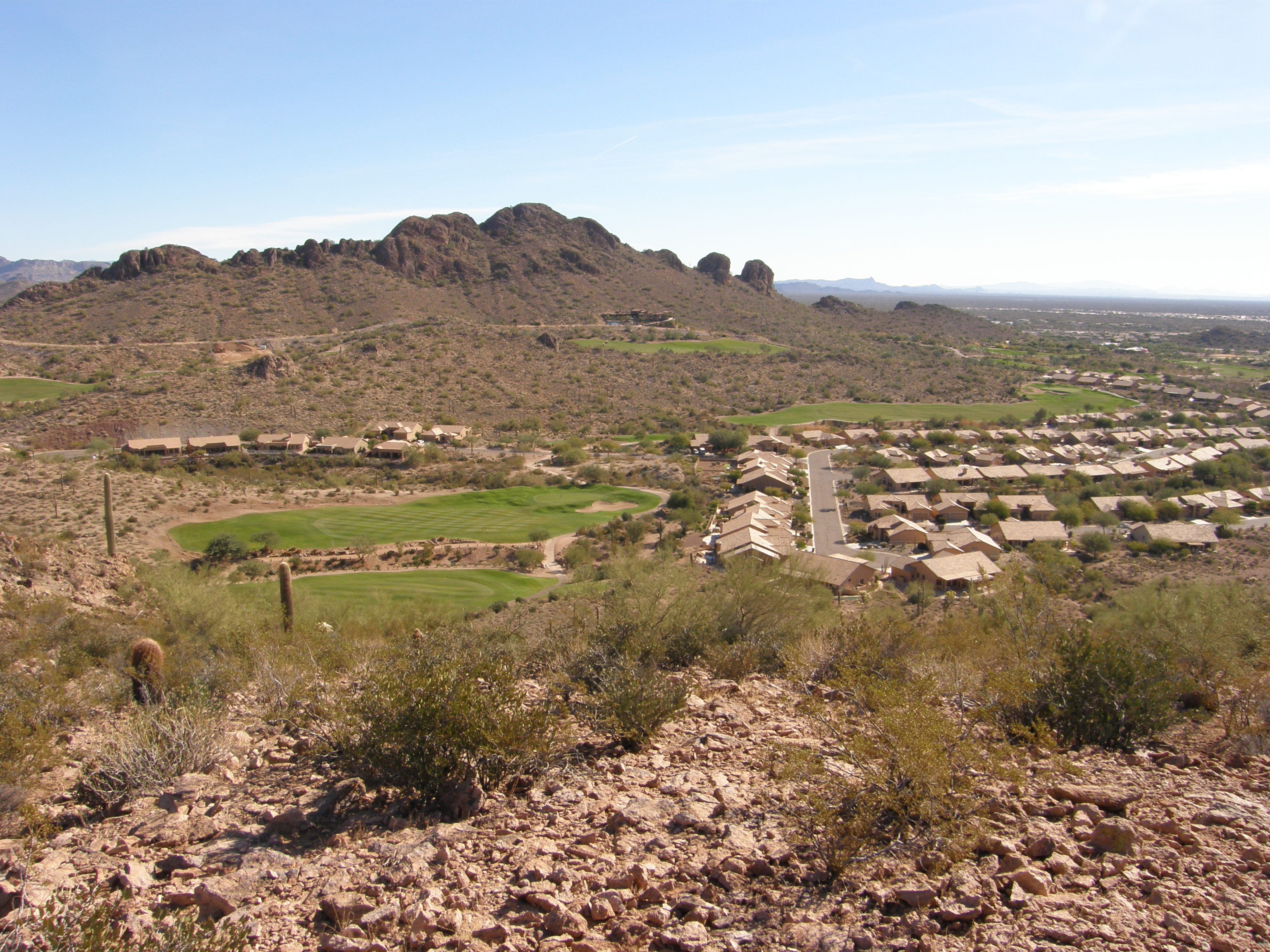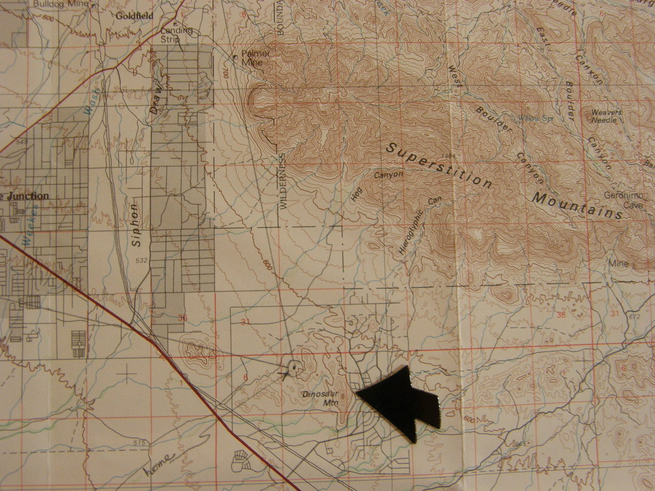 It is located slightly east of the geometric center of Gold Canyon so it divides the community into two natural parts. It gets its name from its appearance which is similar to the back of the stegosaurus dinosaur.